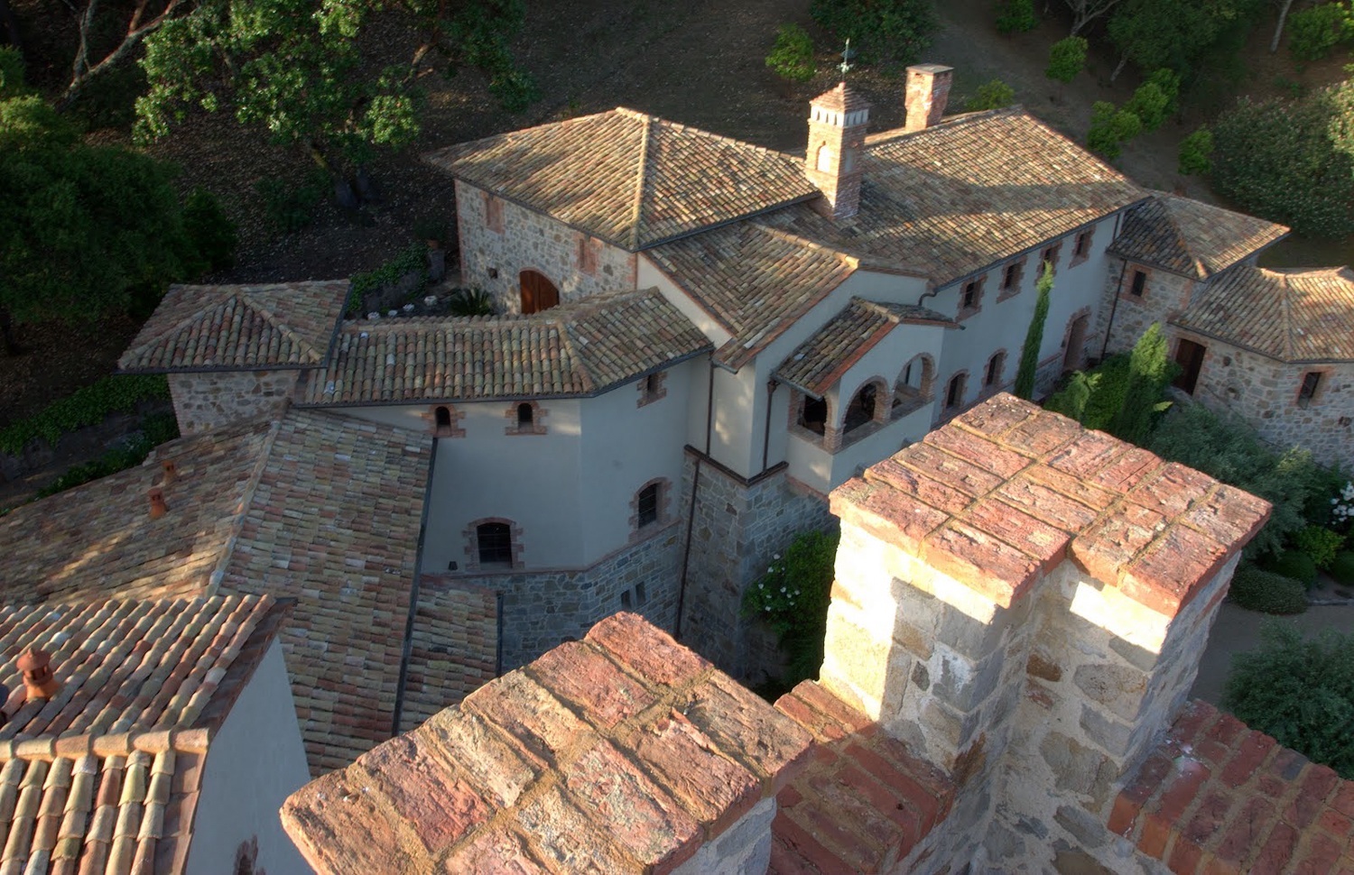 Hand cut stone detailing and a roof of reclaimed Italian tiles add to Blankiet’s distinctive Old World elegance. The winery also boasts state-of-the-art facilities, as well as 8,000 ft. of caves to age wine in the traditional style. Watch the video to the left for aerial drone footage of the estate.
