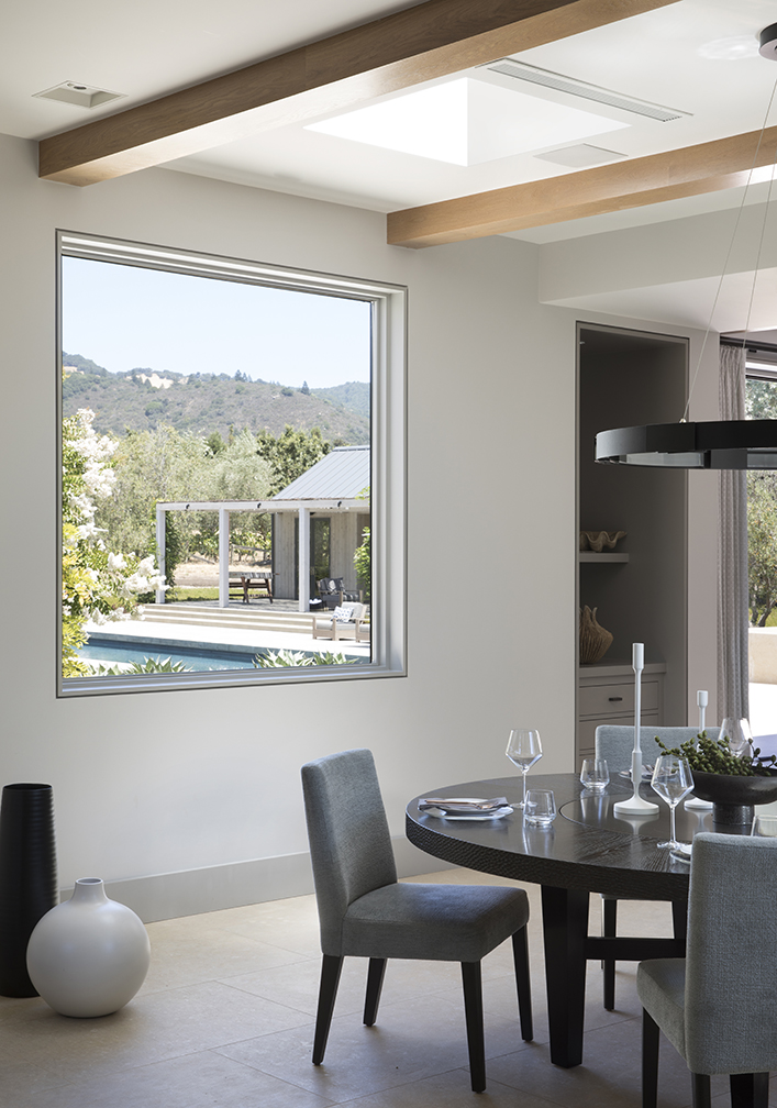 Throughout the property, the design and floor plan compliment the exterior Sonoma mountain vistas and lush surroundings. The master bath’s large bay window welcomes the outdoors, while warm wood cabinetry and stone colored tiling recall the natural tones found just steps outside.
